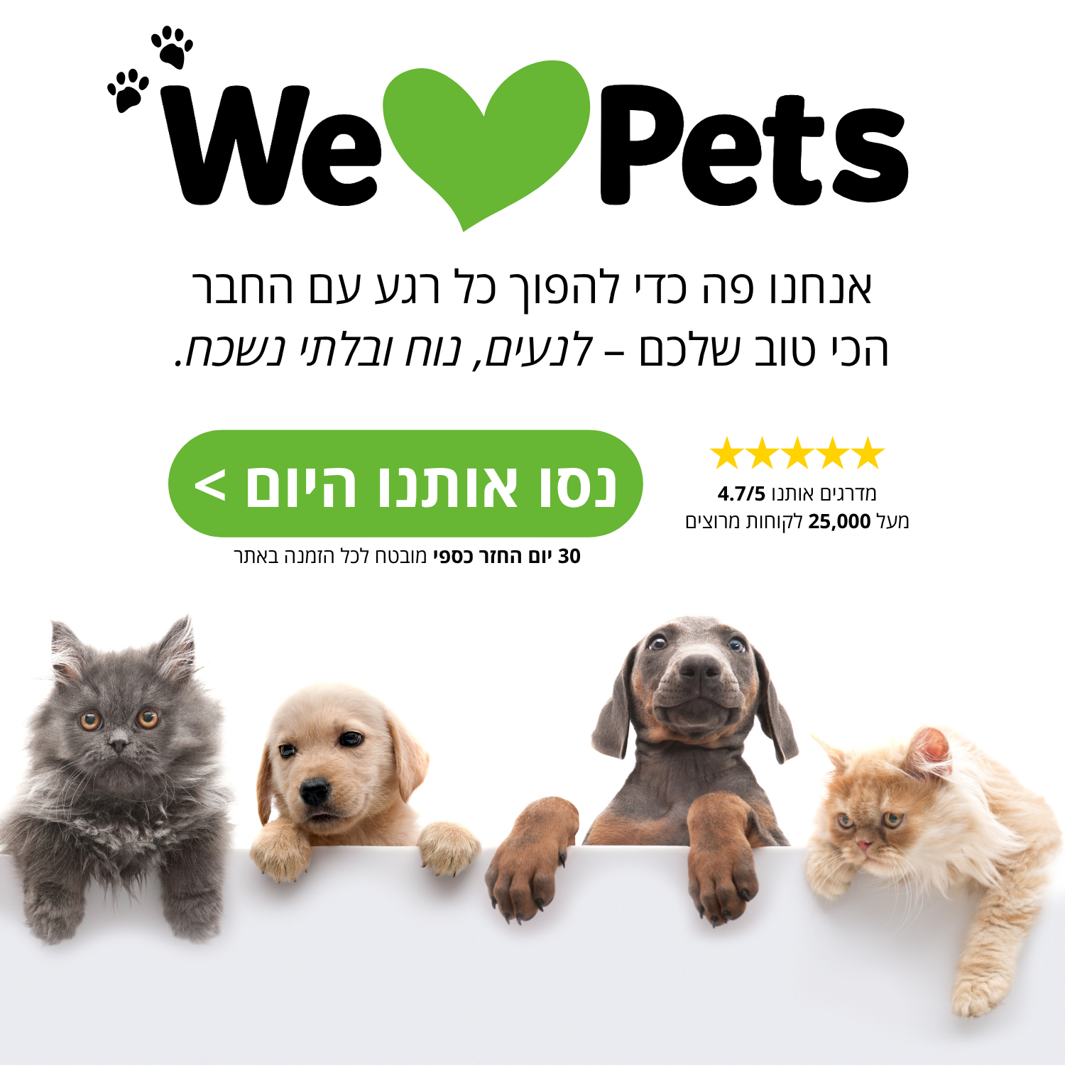 קטגוריות מובילות ב-WePet